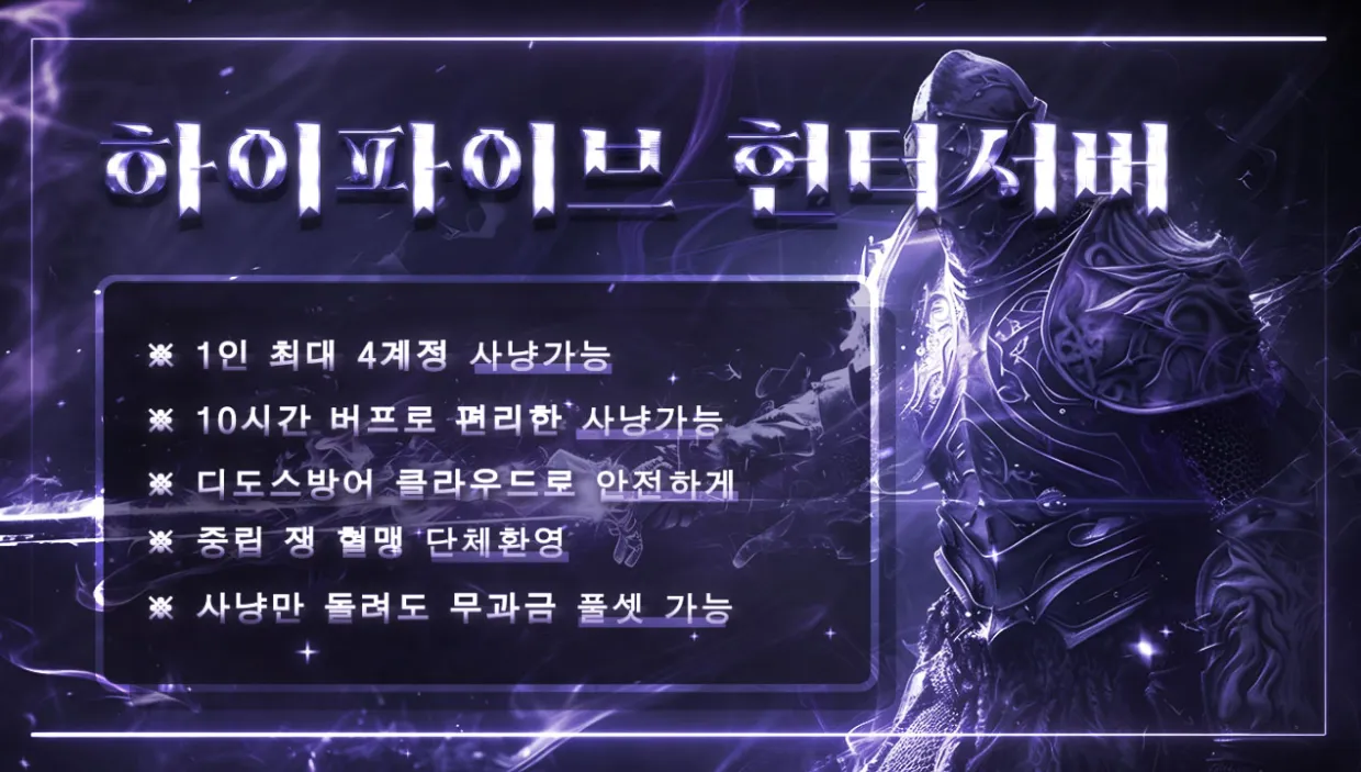 ★[리니지2] 하이파이브 헌터서버(자동사냥)